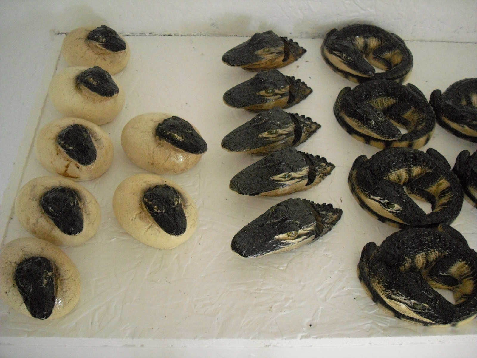 For someone who loves gators this is a great and inexpensive package- You cannot go wrong! Little sleeping gator replica- Gator hatching from an egg and a gator business card holder. You get all three items for one low price!